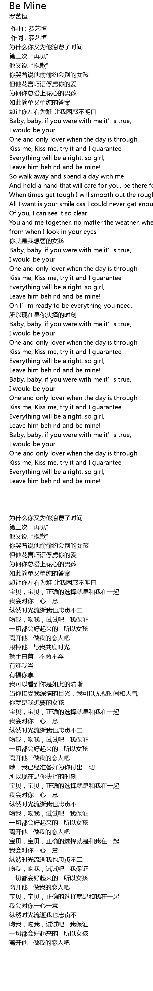 | [00:01.00] | 作词 : 罗艺恒 |