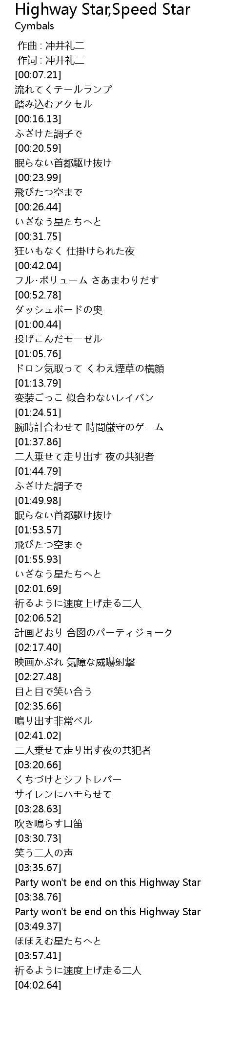 | [03:47.15] | Party won't be end on this Highway Star |