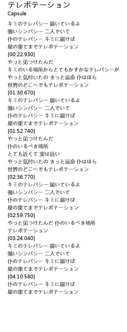 | [04:07.000] | 星の果てまでテレポテーション |