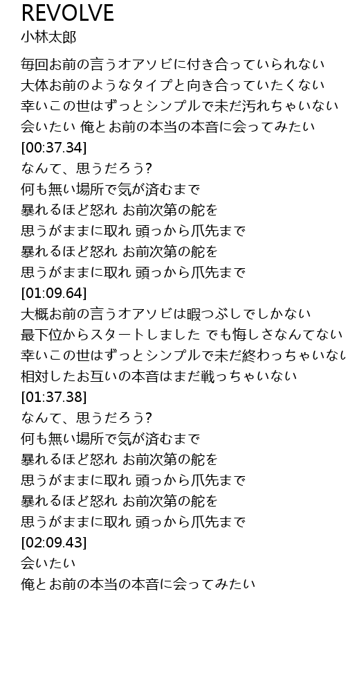 | [00:33.13] | 会いたい 俺とお前の本当の本音に会ってみたい |