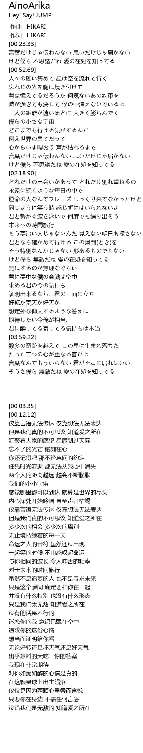 | [00:42.71] | けど僕ら 不思議だね 愛の在処を知ってる |