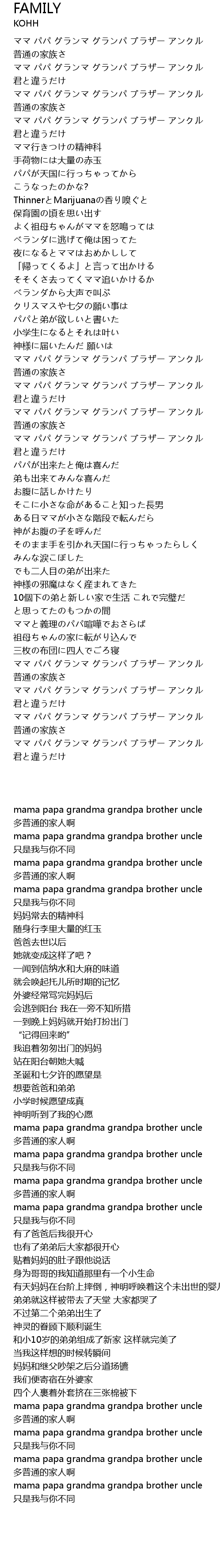 | [01:17.50] | mama papa grandma grandpa brother uncle |