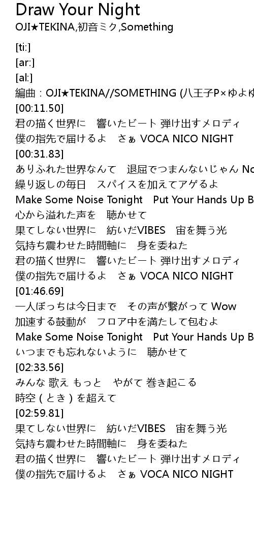 | [03:24.91] | 僕の指先で届けるよ さぁ VOCA NICO NIGHT |