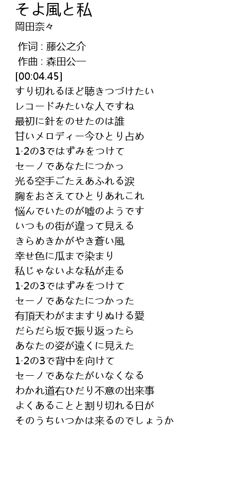 | [02:12.16] | わかれ道右ひだり不意の出来事 |