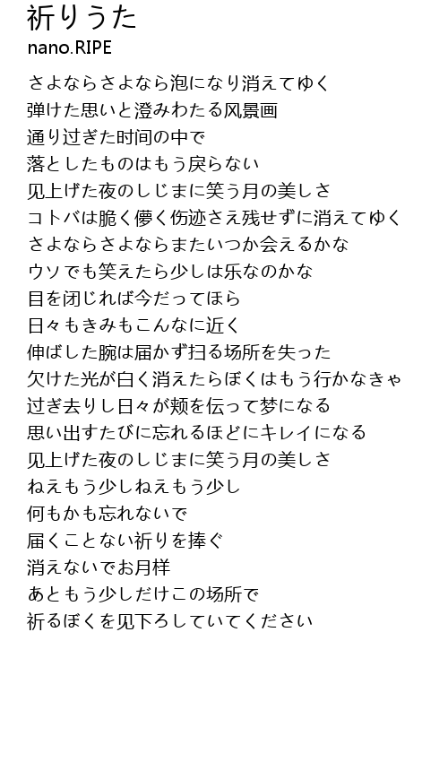 | [03:05.245] | 祈るぼくを见下ろしていてください |