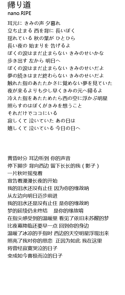 | [00:49.560] | 停下脚步 背向西边 留下长长的我(影子) |