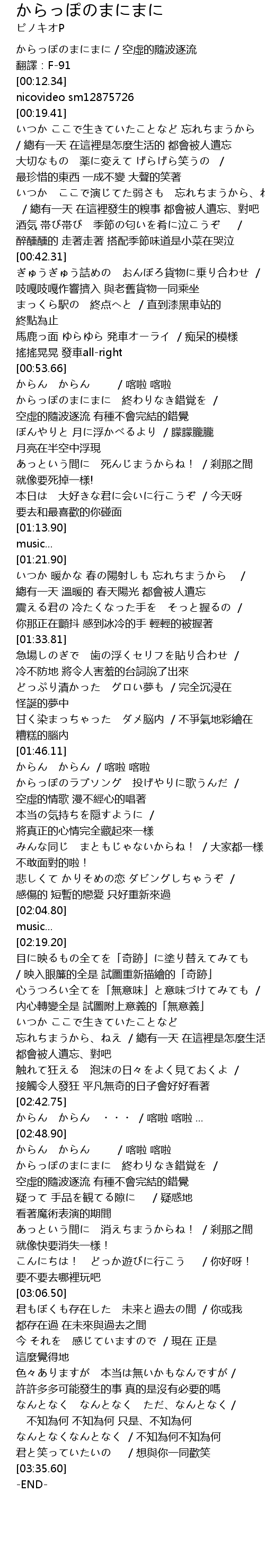 | [00:00.00] | からっぽのまにまに / 空虛的隨波逐流 |