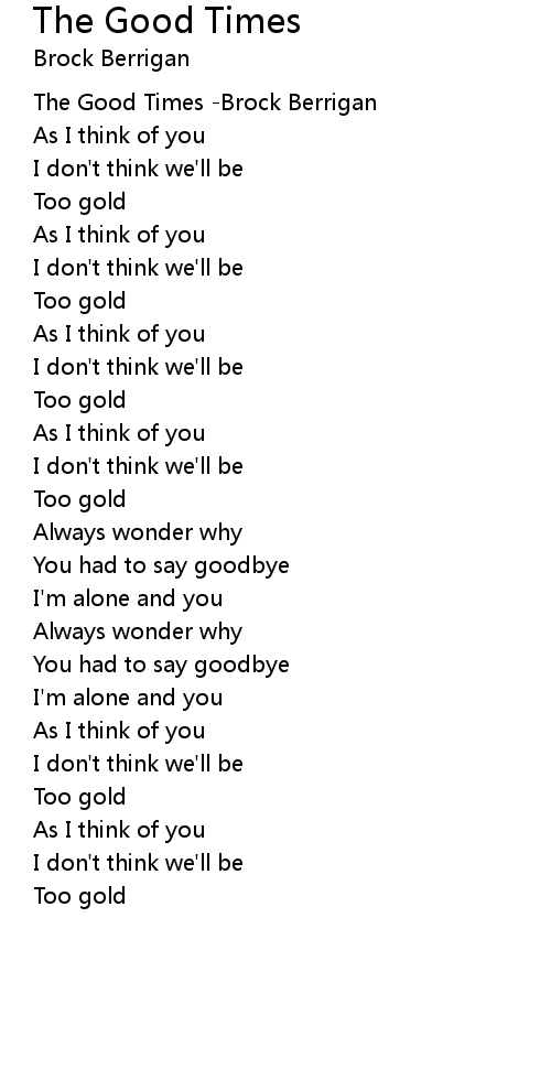| [00:00.180] | The Good Times -Brock Berrigan |