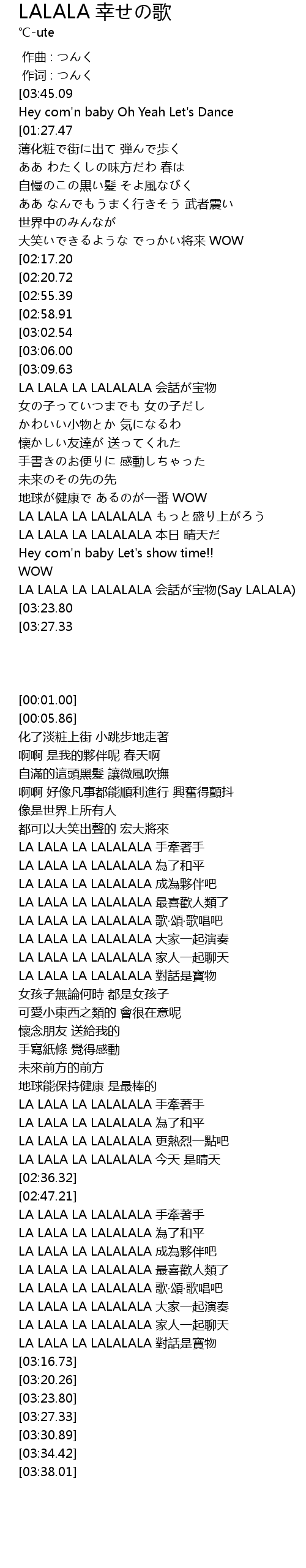 | [01:02.54][02:20.72][02:51.79] | LA LALA LA LALALALA 平和であるために |