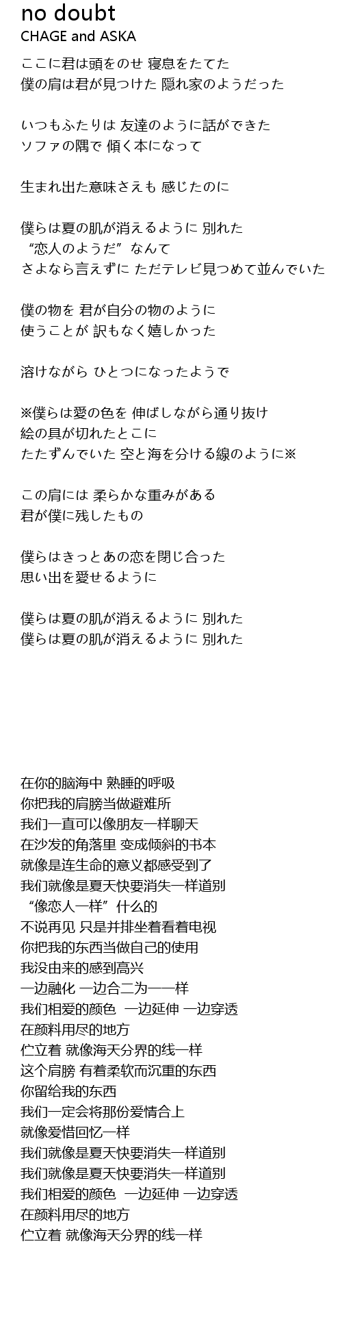 僕らは夏の肌が消えるように 別れた |
