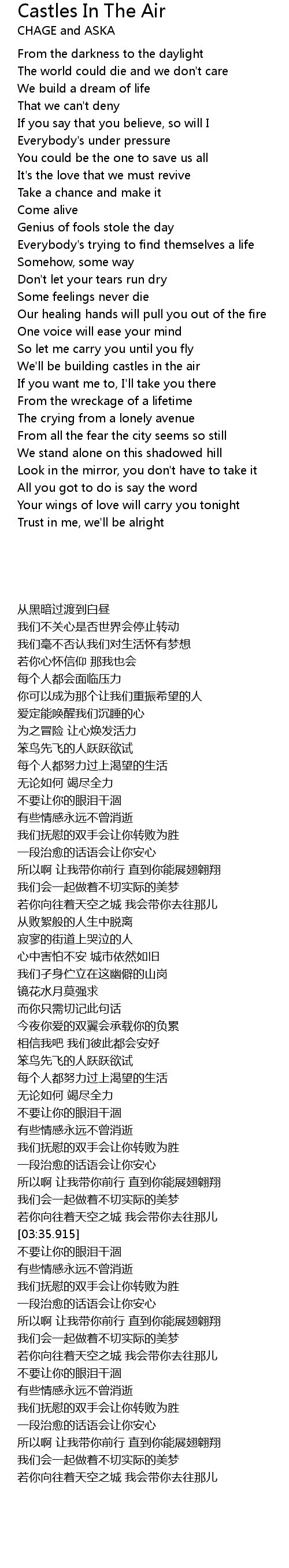 | [03:27.765] | 若你向往着天空之城 我会带你去往那儿 |