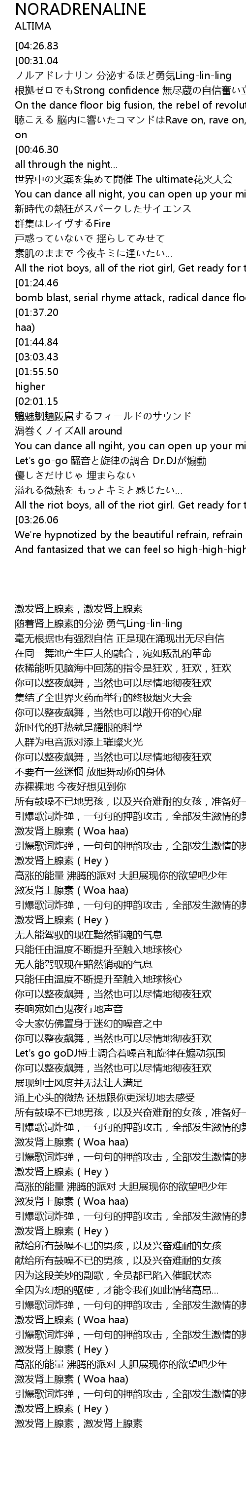 | [01:22.04][01:37.20][02:53.53][03:08.70][03:54.28][04:09.62] | NORADRENALINE Woa haa |