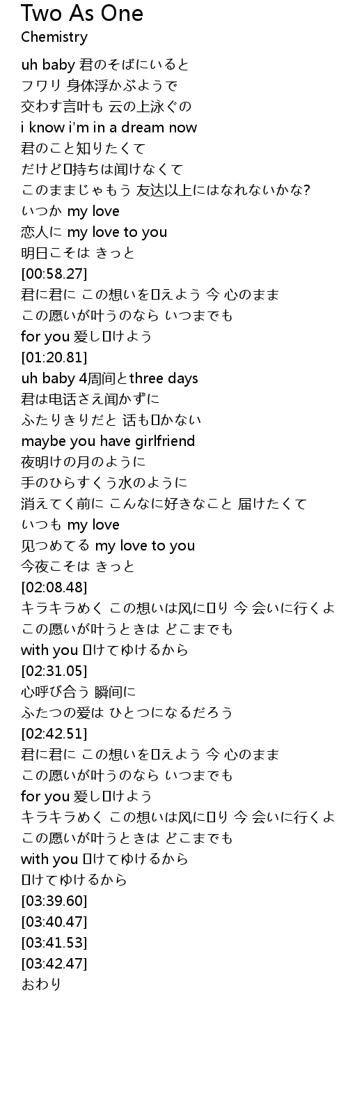 | [02:36.39] | ふたつの爱は ひとつになるだろう |