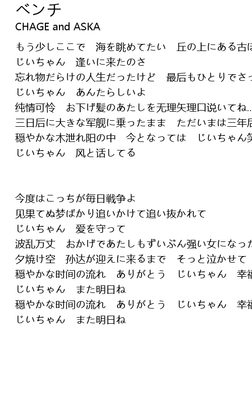| もう少しここで 海を眺めてたい 丘の上にある古ぼけたベンチにひとり | |