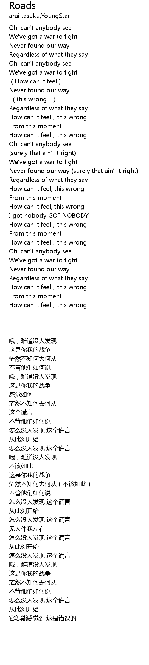 | [02:19.06] | How can it feel, this wrong |