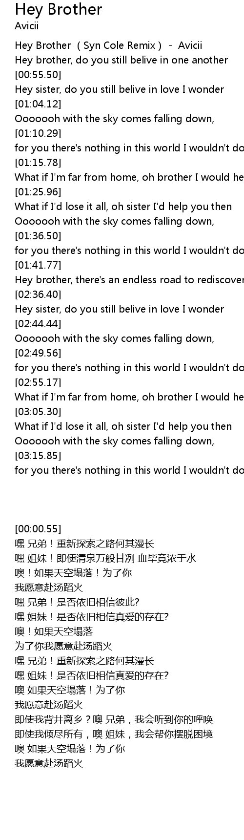 | [00:00.55] | Hey Brother Syn Cole Remix Avicii |