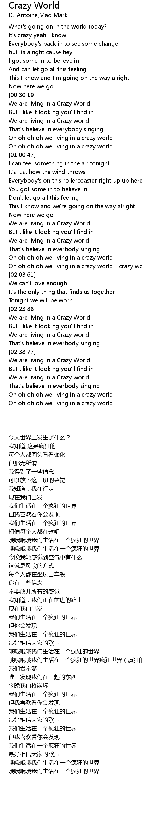 Oh oh oh oh we living in a crazy world - crazy world (crazy world) |