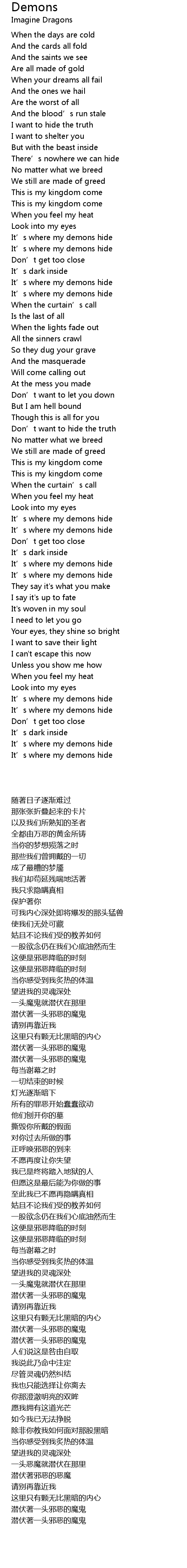 | 歌曲 | Demons |