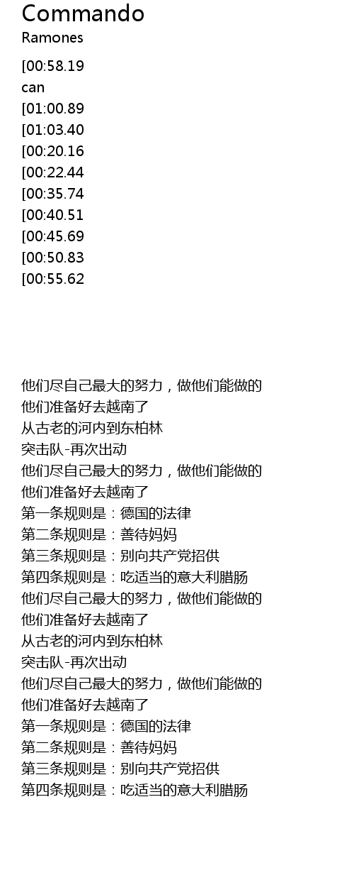 | [01:08.54][00:22.44] | Commando - involved again |