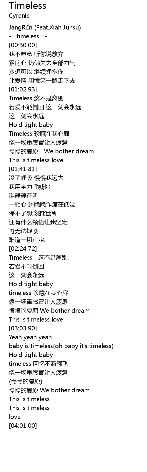 | [03:24.34] | baby is timeless(oh baby it's timeless) |