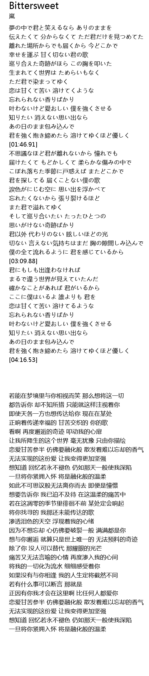 | [00:49.40] | 幸せを運ぶ 甘く切ない君の歌 |