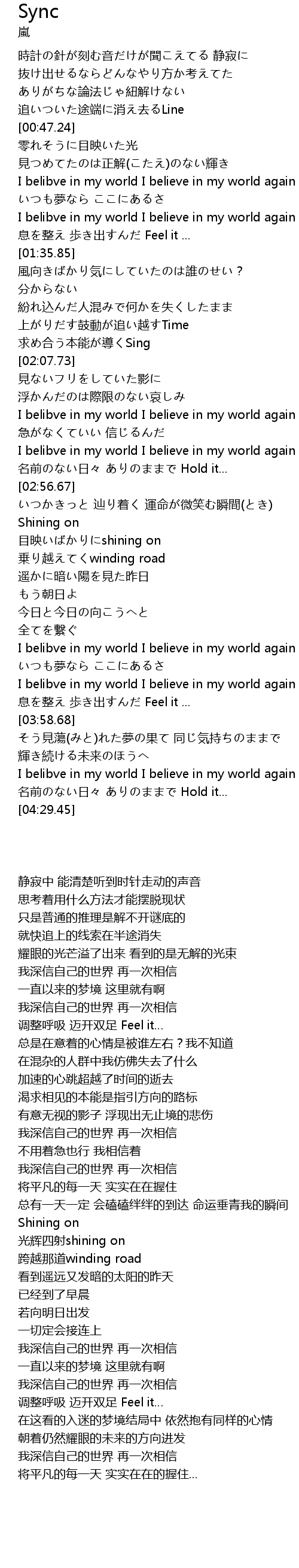 | [04:13.47] | I belibve in my world I believe in my world again |