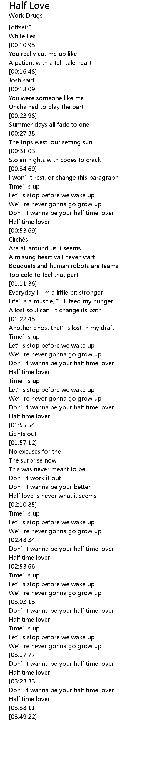 | [01:53.53] | Half time lover |
