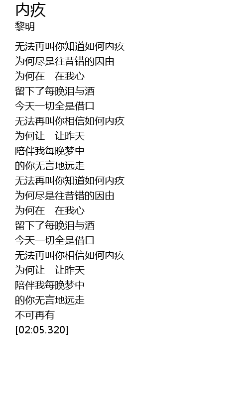 | [00:06.950] | 无法再叫你知道如何内疚 |