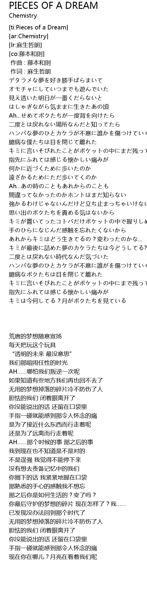 | [03:27.304] | キミが最後に詰めた夢のカケラたちは今どうしてる?ボクは |