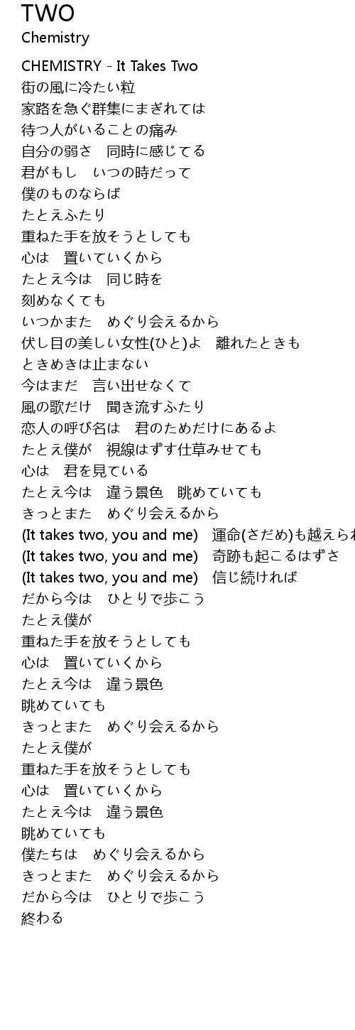 | [00:00.00] | CHEMISTRY - It Takes Two |