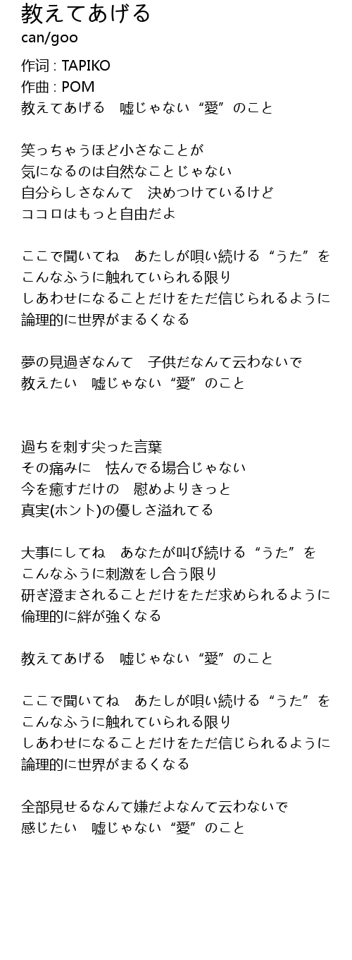 | 教えてあげる 嘘じゃない“愛”のこと | |