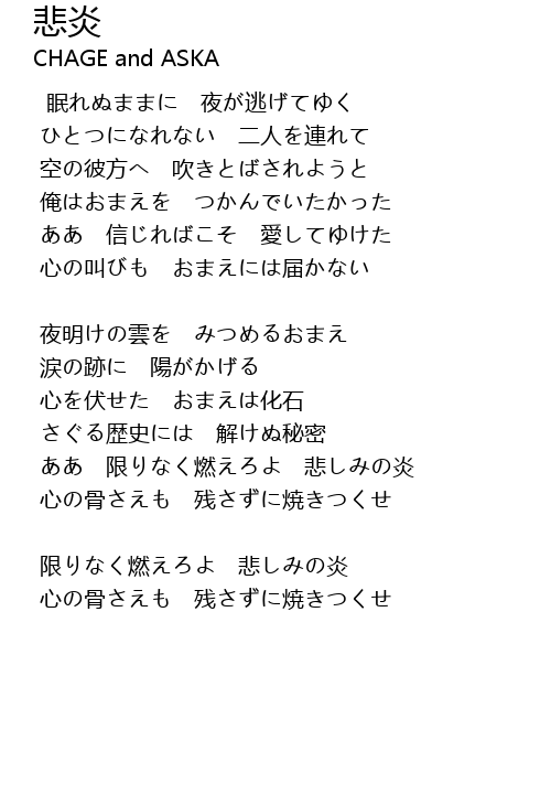 ああ 限りなく燃えろよ 悲しみの炎 |