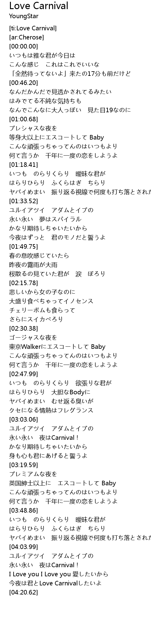 | [04:14.78] | 今夜は君とLove Carnivalしたいよ |