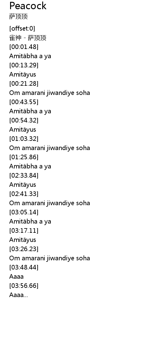 | [00:00.31] | 雀神 - 萨顶顶 |