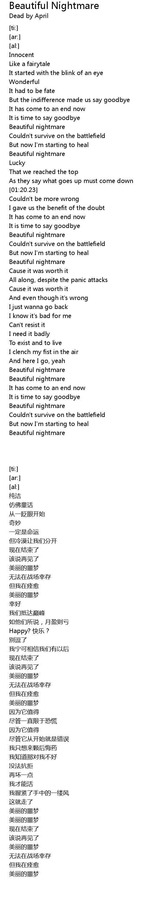 [01:31.98] Beautiful nightmare