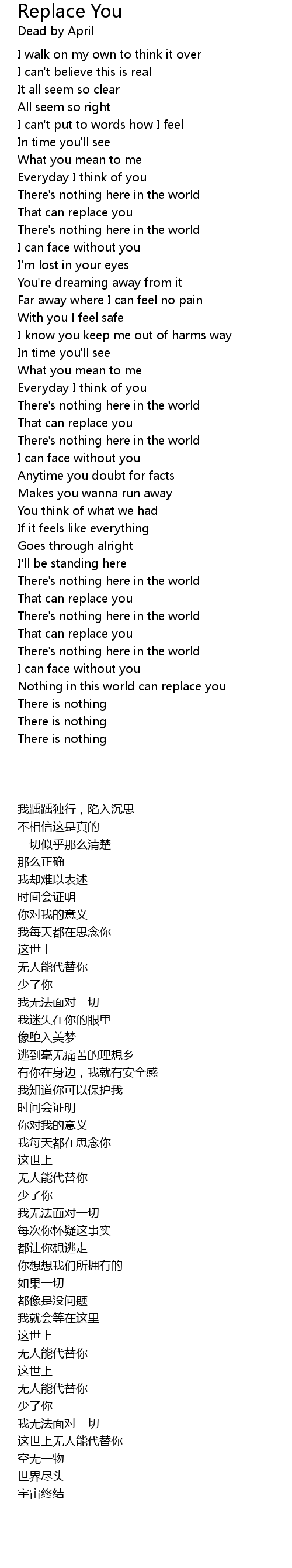 Nothing in this world can replace you |