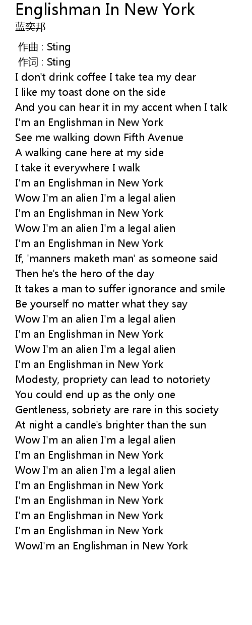 | [01:18.34] | Wow I'm an alien I'm a legal alien |
