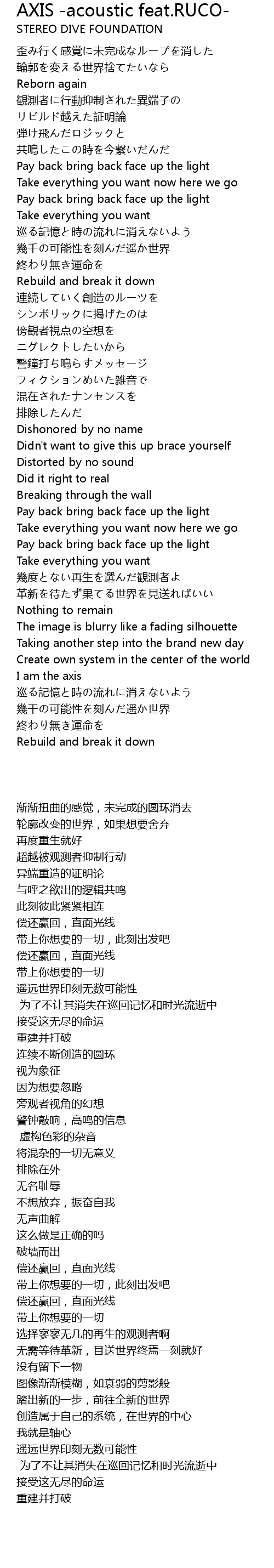 | 歌曲 | AXIS -acoustic feat.RUCO- |