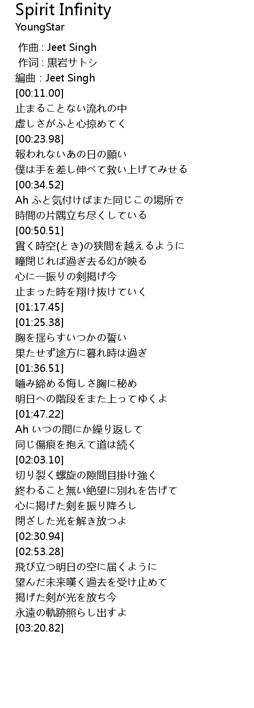 | [02:03.40] | 切り裂く螺旋の隙間目掛け強く |