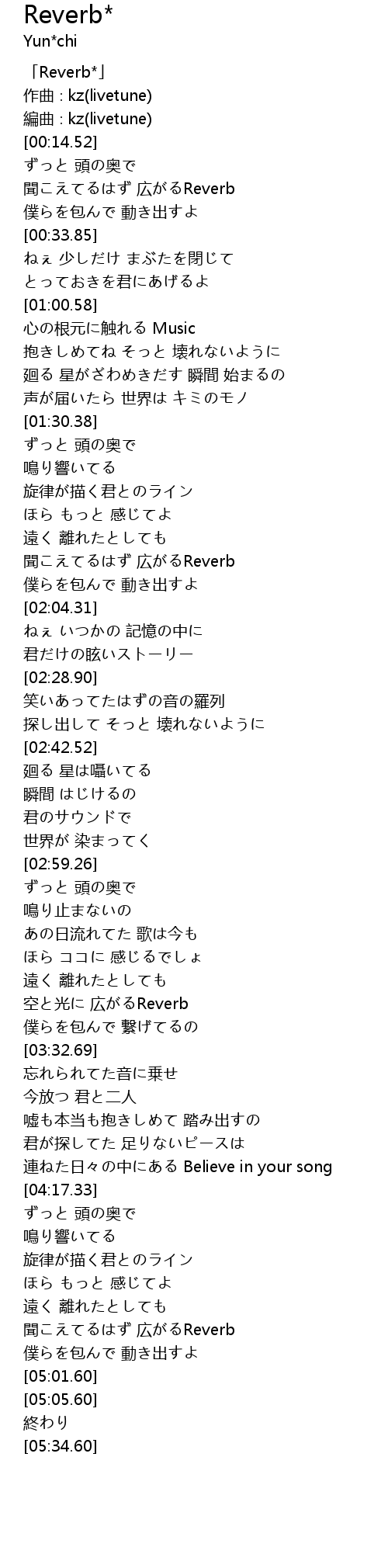 | [00:00.53] | 「Reverb*」 |