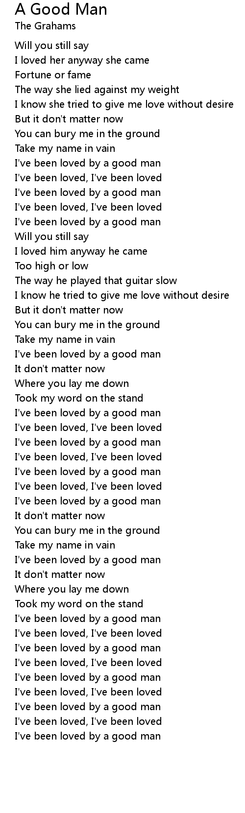 I've been loved by a good man |