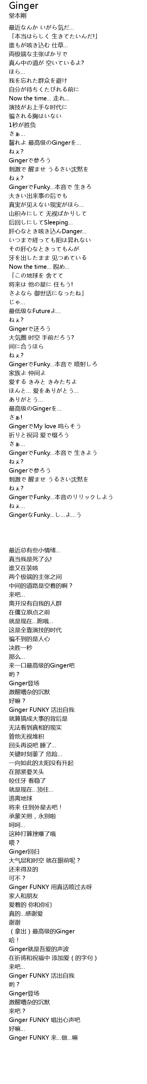 | [04:01.84] | GingerでFunky…本音のリリックしよう |