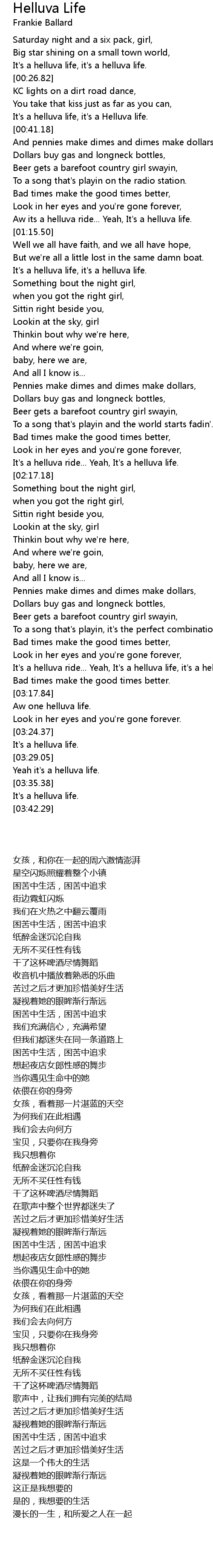 It's a helluva ride... Yeah, It's a helluva life, it's a helluva life. |