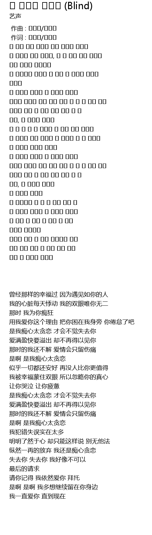 | [01:49.600] | 난 행복에 눈이 멀어서 네 마음을 볼 수 없었지 |