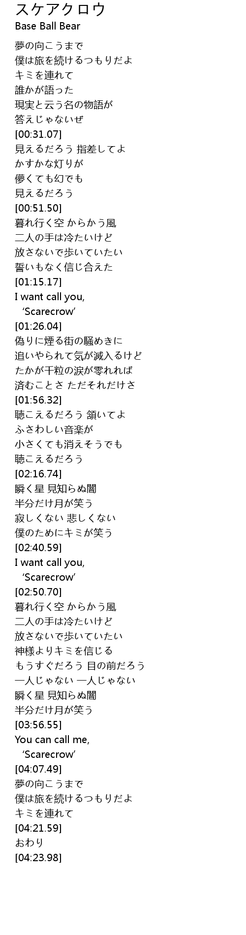| [04:03.95] | ' Scarecrow' |