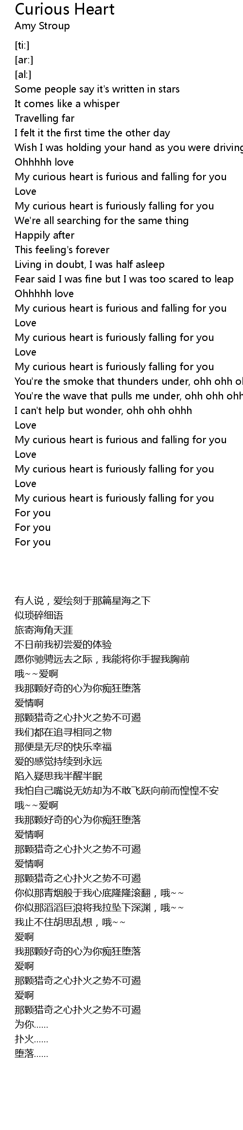 My curious heart is furious and falling for you |