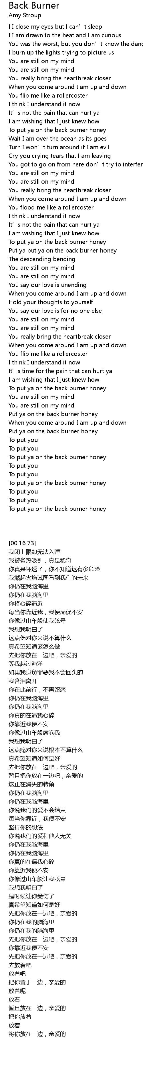 | [03:34.87] | To put ya on the back burner honey |