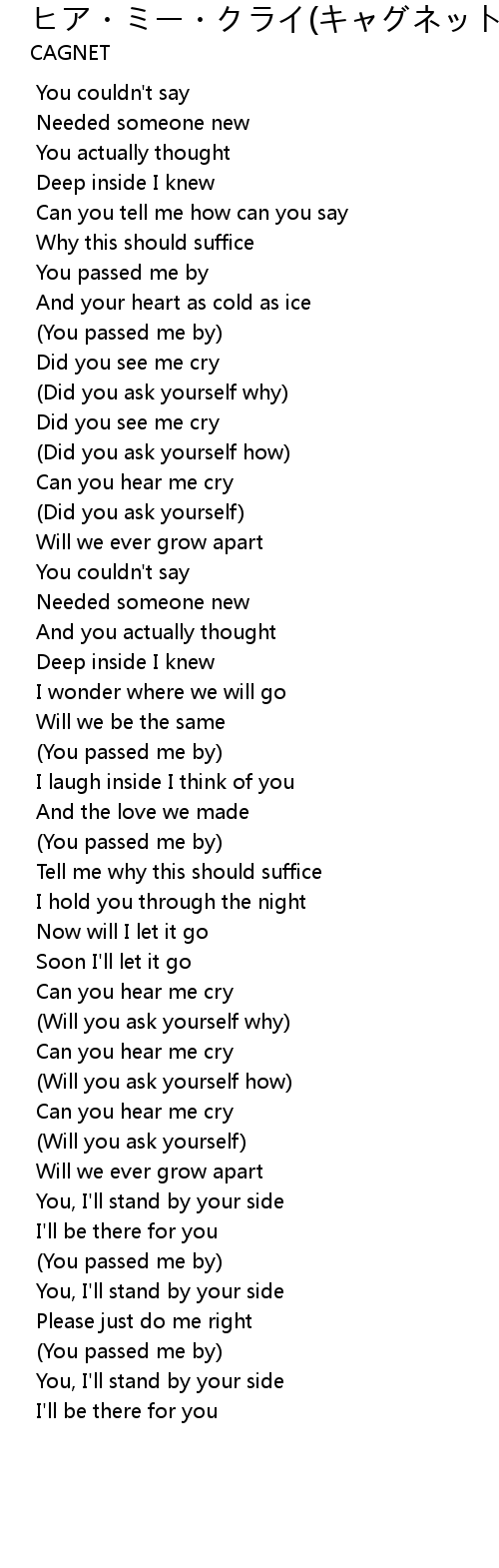 歌曲 ヒア・ミー・クライ(キャグネット)