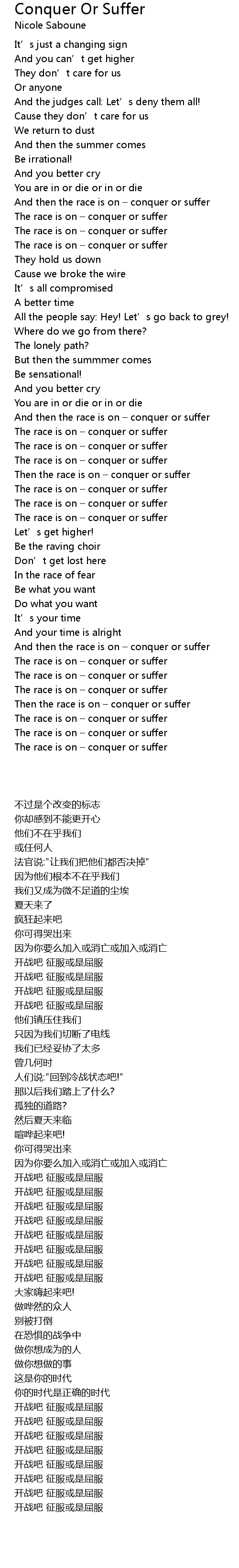 | [02:53.88] | And then the race is on conquer or suffer |