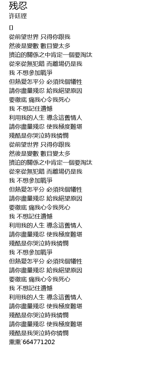 | [03:24.223] | 請你盡量殘忍 給我絕望原因 |
